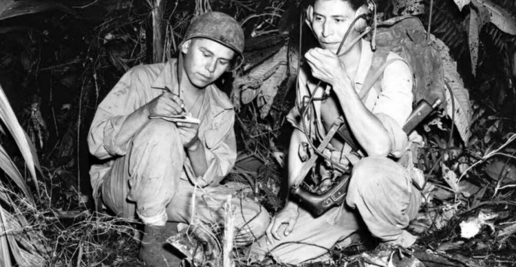 “A runner approached, handing me a message written in English. [I transmitted the message to another code talker:] ‘Enemy machine gun nest on your right flank. Destroy.’ Suddenly, just after my message was received, the Japanese gun exploded, destroyed by U.S. artillery.”