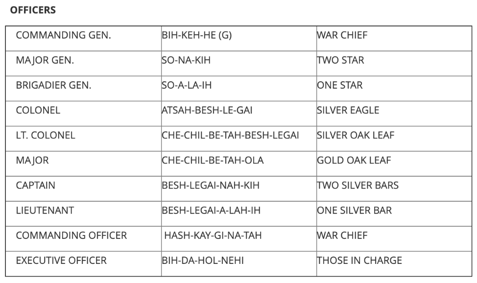 Navajo Code Names for Officiers~World War 2~The Republic.